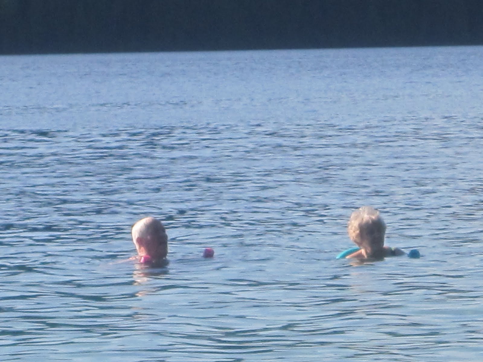 After Ron joined us, he and my dad completed their annual swim across the lake. My mom, Lia, and I motored along their side in the boat as their chaperones. They completed the 1.25 mile swim in 45 minutes!