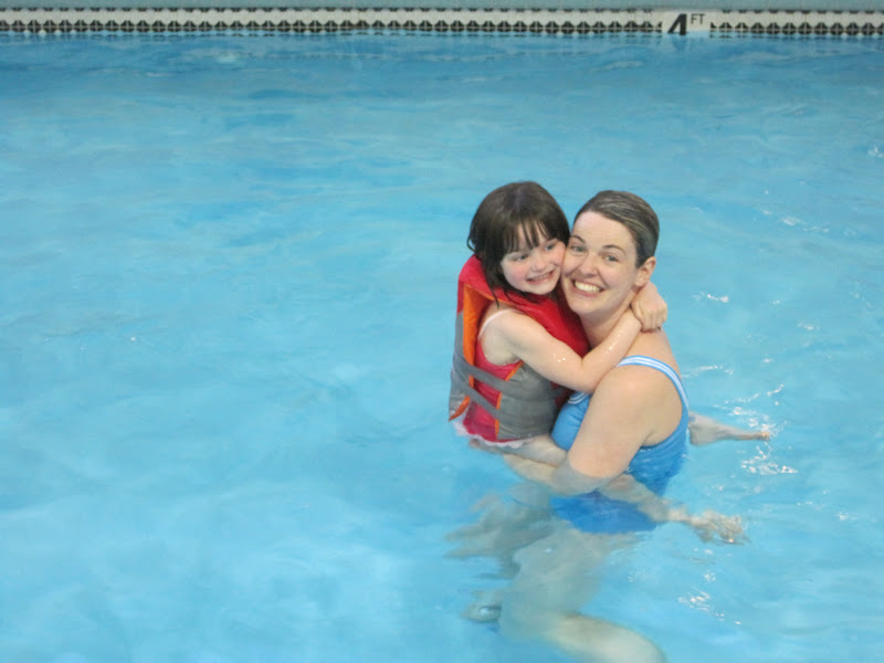 Thanks to her swim lessons, Lia has become much more daring in the pool and enjoyed jumping off of the steps over and over again.