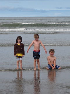 We enjoyed a morning at the beach on Saturday. This is how we (well, Ron really) managed to get our children out there. Talk about heavy laden.