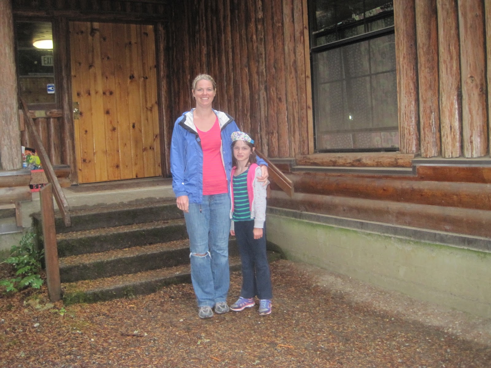 Lia and I posing in front of our cabin before heading off to dinner at the lodge.