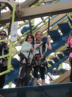 The grand finale! After finishing the entire course, the girls ended up on a platform high in the air that they got to repel down. Here is Lia first jumping off.