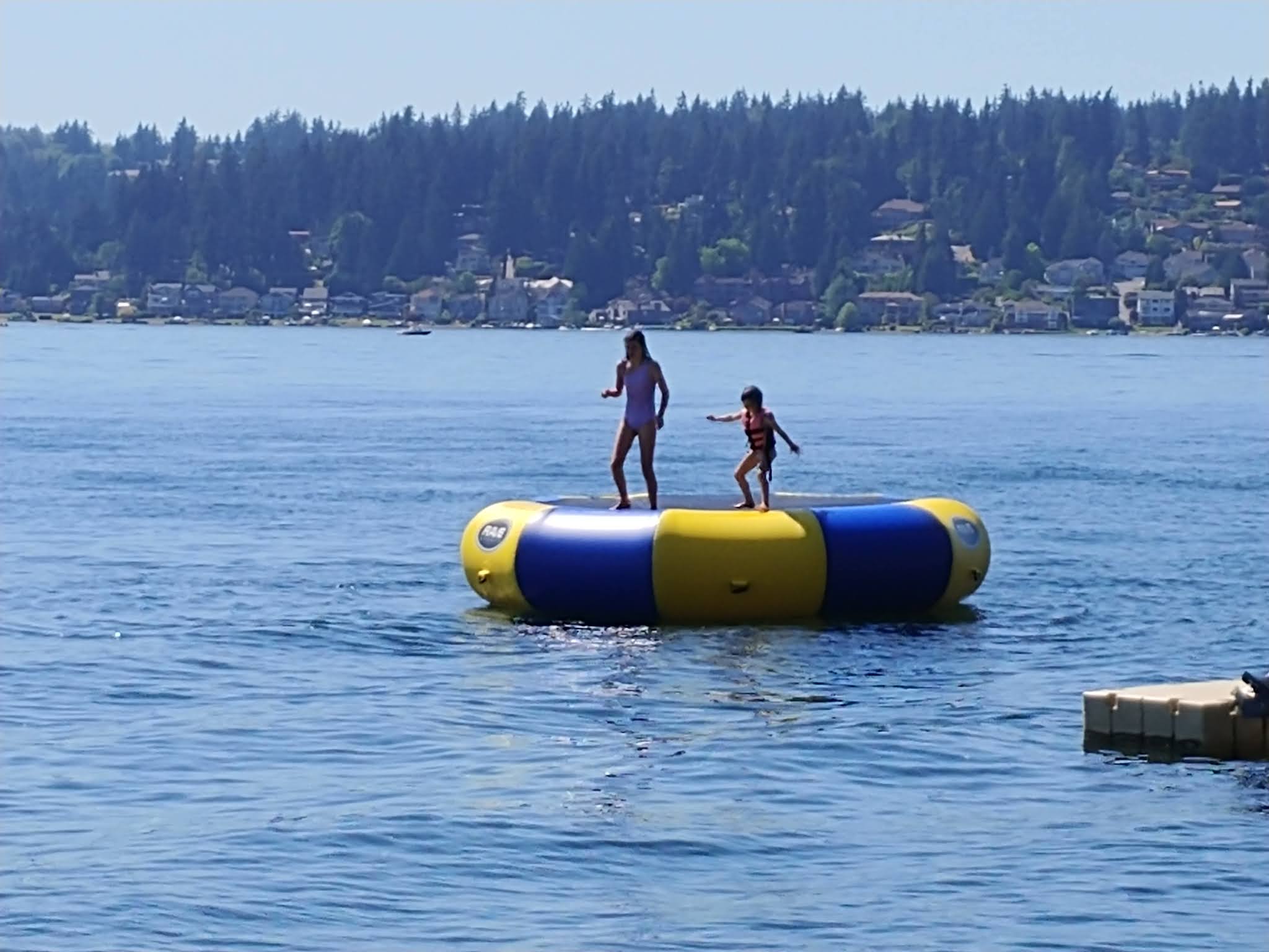 Helping Lia and my mom get ready to take me out skiing for the first time after launching the boat that morning.