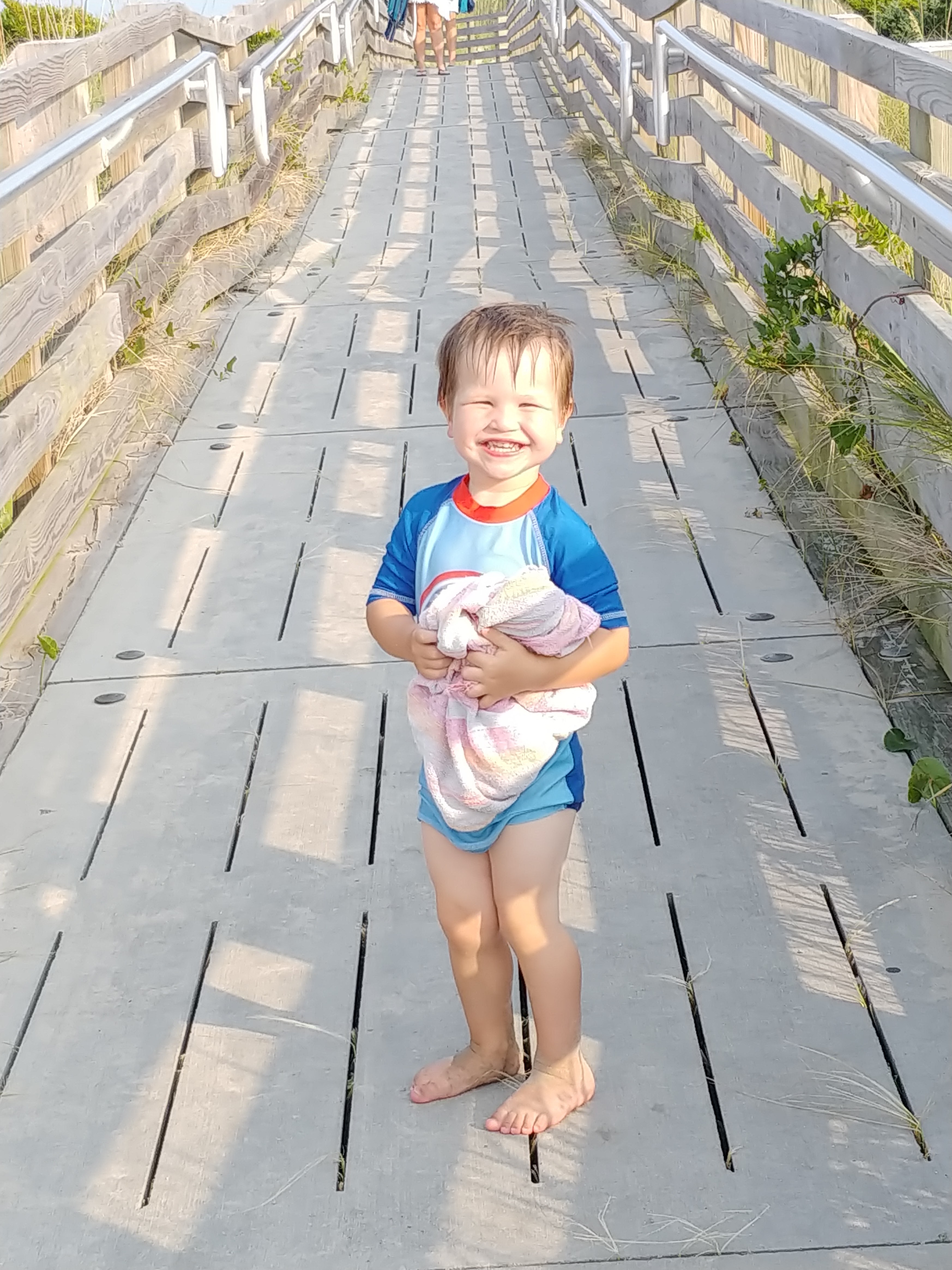 Emmett hung back on the beach with Ron or me and had a fun time playing in the sand and in the shallow water. Here is my cute boy giving me a great smile!