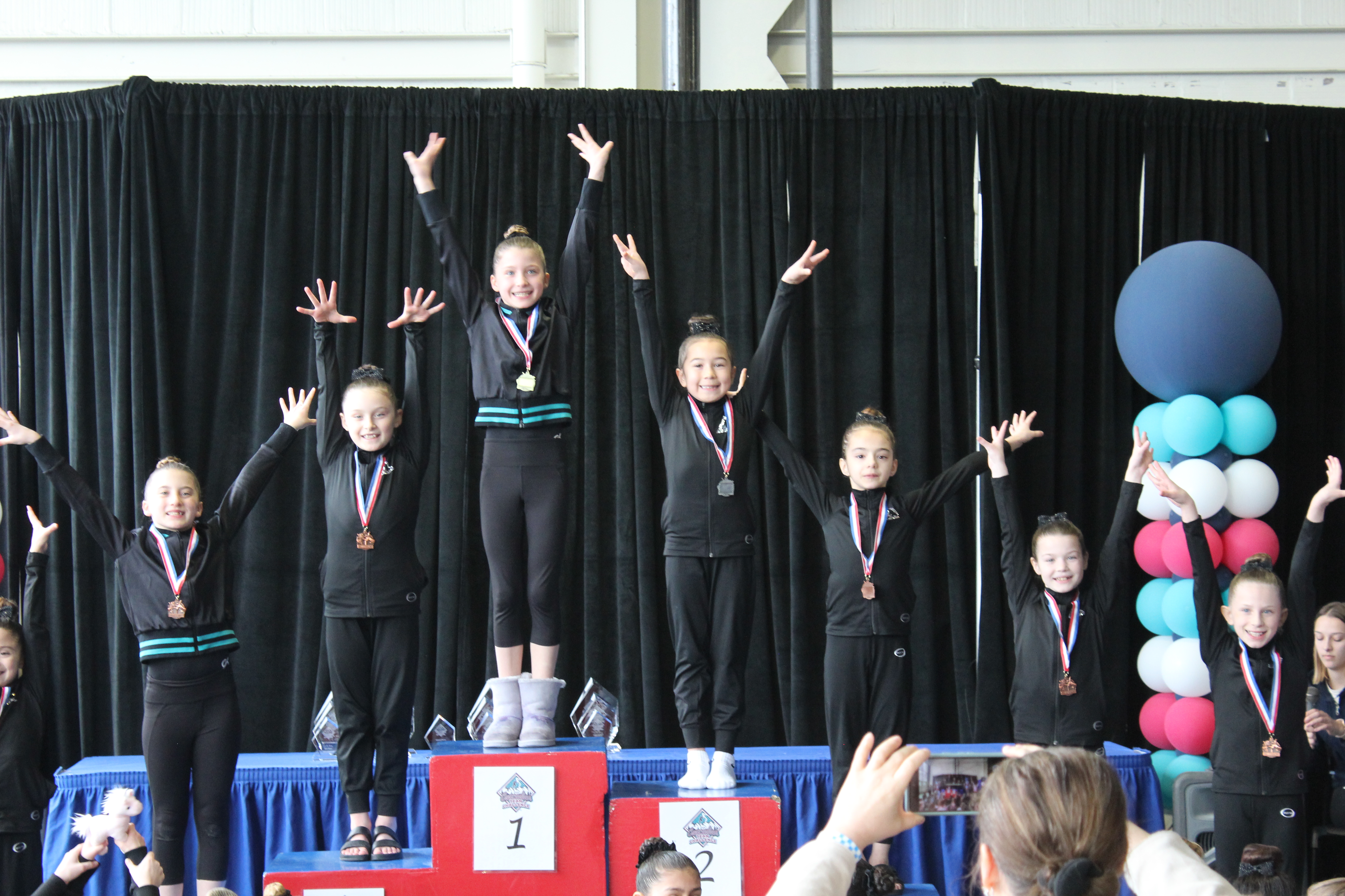 The medalists saluting the audience. Ella is the second from the right.